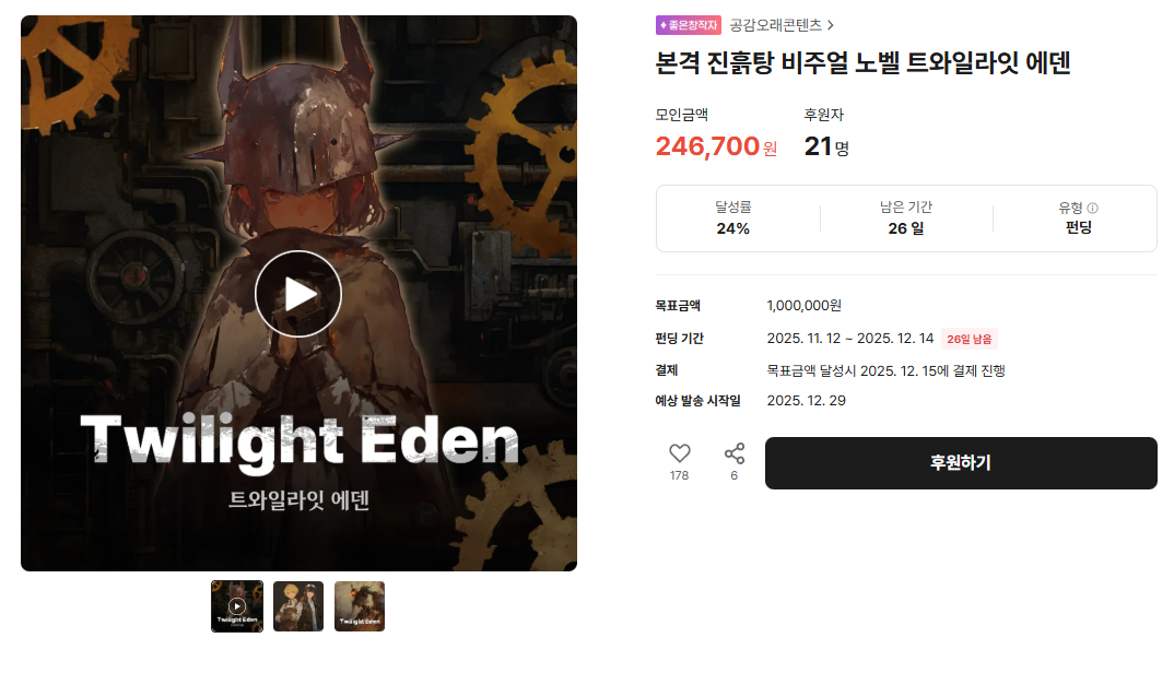 🎊공감오래콘텐츠, '트와일라잇 에덴' 텀블벅에서 첫 발을 내딛다